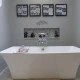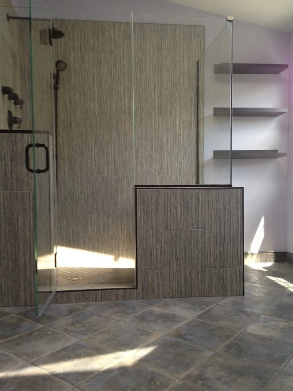 This master bathroom features a beautiful, porcelain tile straight from Spain! This is a fully enclosed custom glass shower with oil rubbed bronze fixtures and accents. The tile has been installed in a diagonal pattern displaying a traditional look.